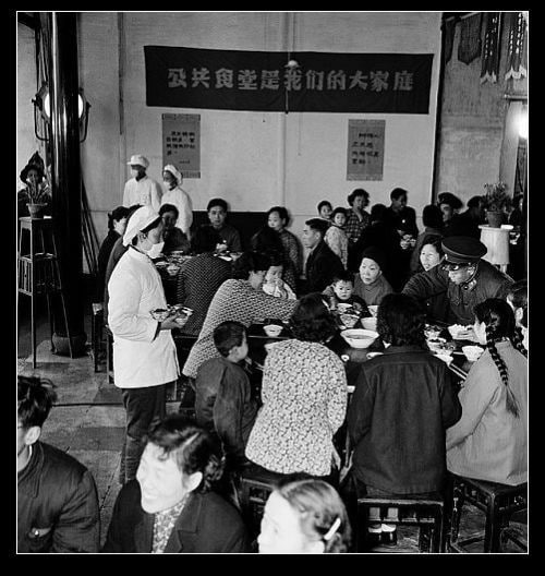 "公共食堂是我们的大家庭”——1959年,无锡市和平区居民食堂。"大跃进"年代为解放劳动力提倡吃饭食堂化。