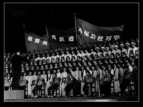 "三面红旗”——1963年,南京举办歌颂三面红旗群众歌咏会。"三面红旗"分别是"总路线”、"大跃进"及"人民公社"。